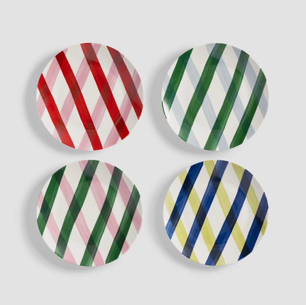 Lot 4 assiettes décor à quadrillages